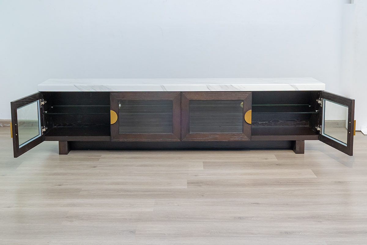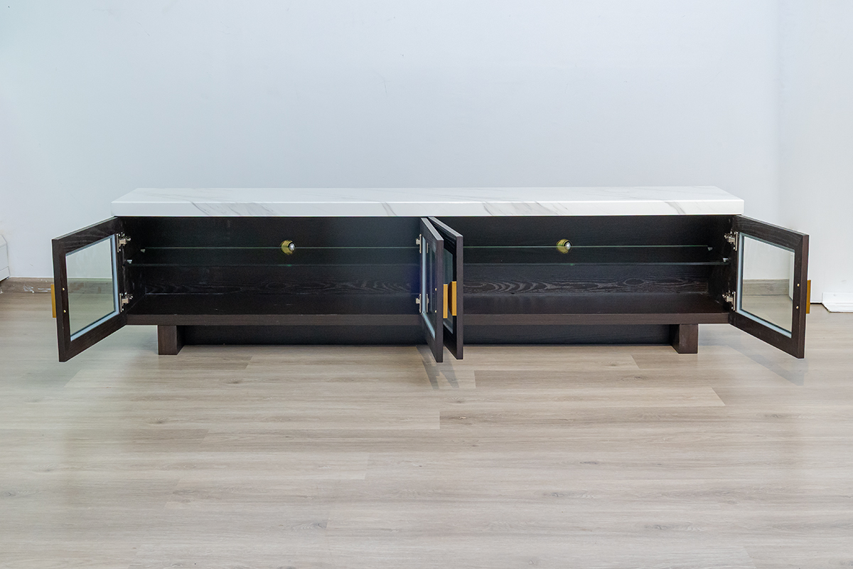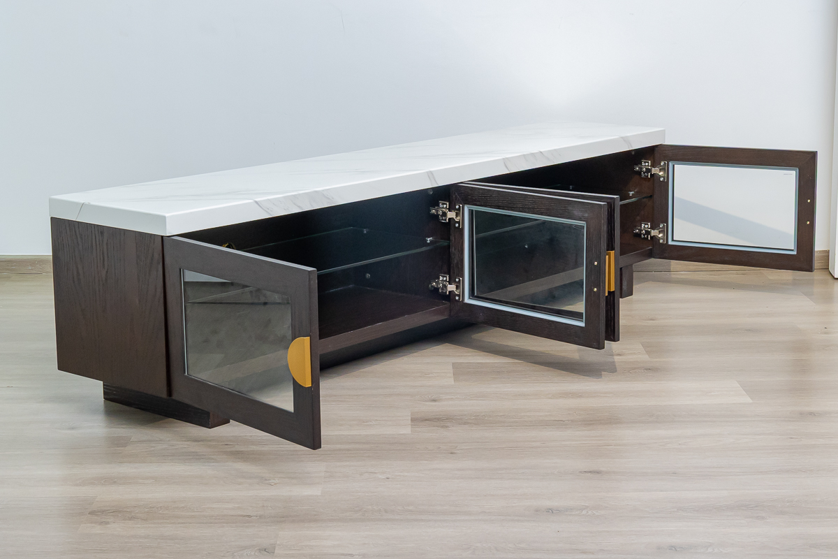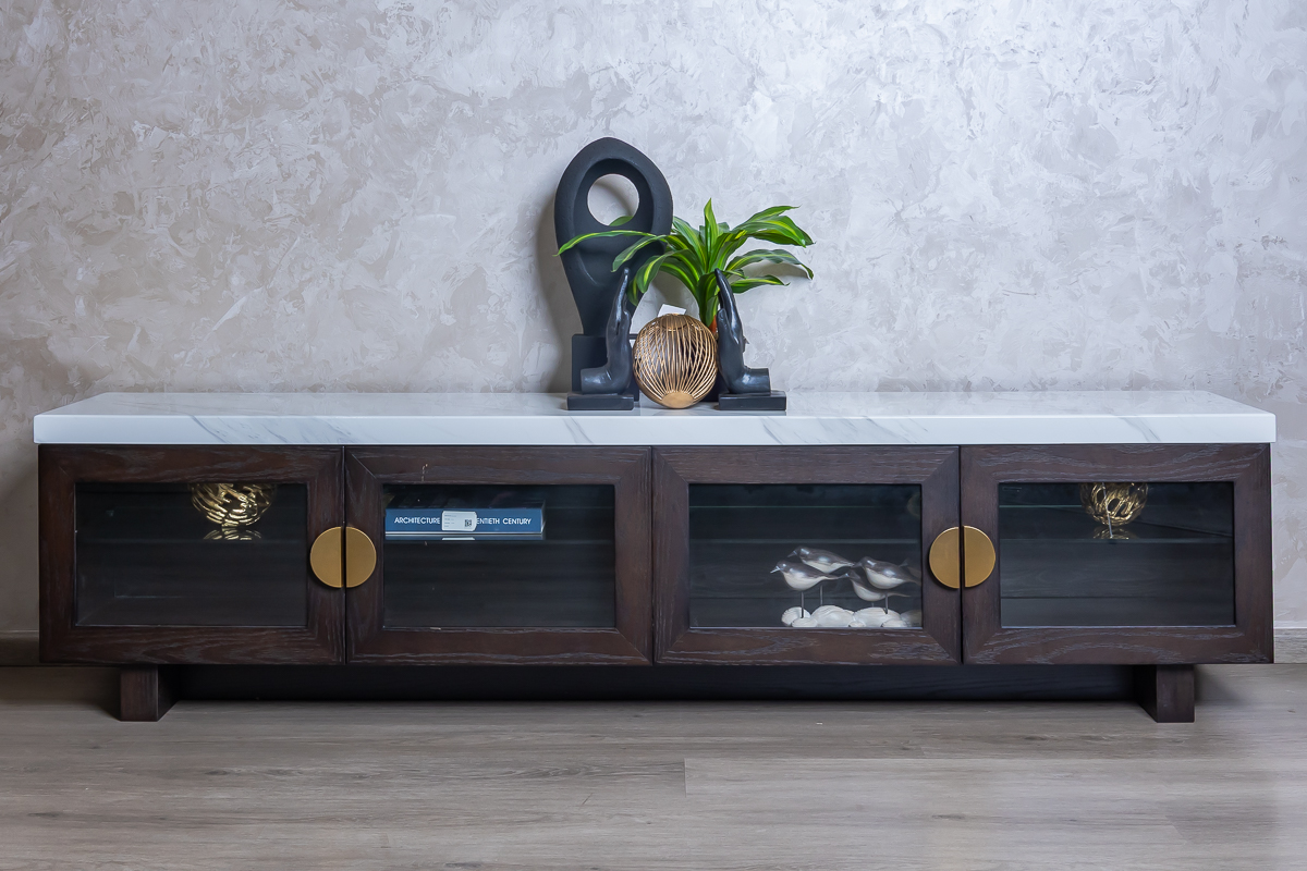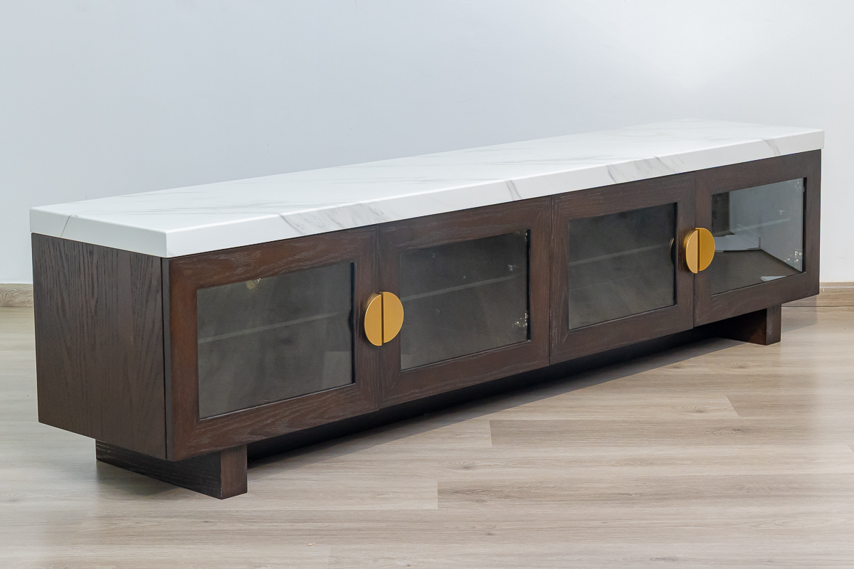 Aaron TV Cabinet – Laminate Top & Glass Doors