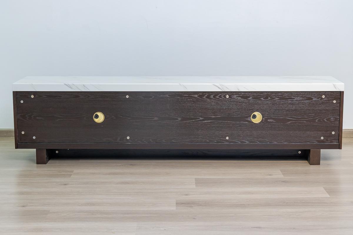 Add timeless elegance and functional storage to your living room with the Aaron TV Cabinet. Featuring a sophisticated laminate top and rich dark wood finish, this cabinet brings a touch of luxury to any entertainment space.