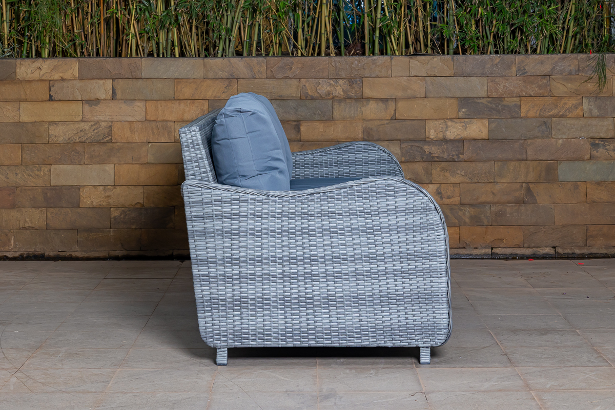 3 Seater: – L194 x W84 x H81cms 1 Seater: – L79 x W84 x H81cms Table: – L110 x W62 x H40cms