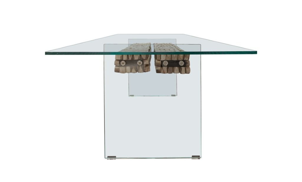 The DETROIT Living Collection, made in the Philippines, offers a contemporary furniture style blending modern and industrial aesthetics. Each piece features 19mm tempered glass tops and legs. The collection highlights a unique rustic and artistic effect achieved with plywood, pinewood, and natural driftwood beams.