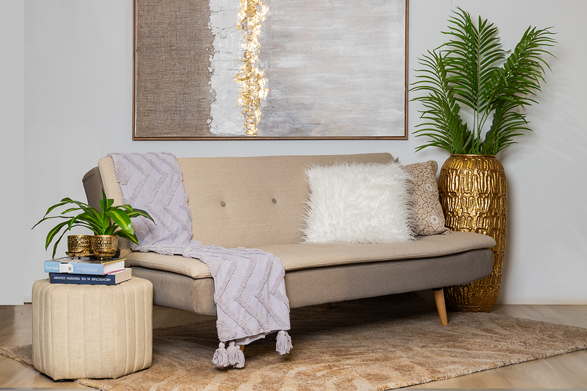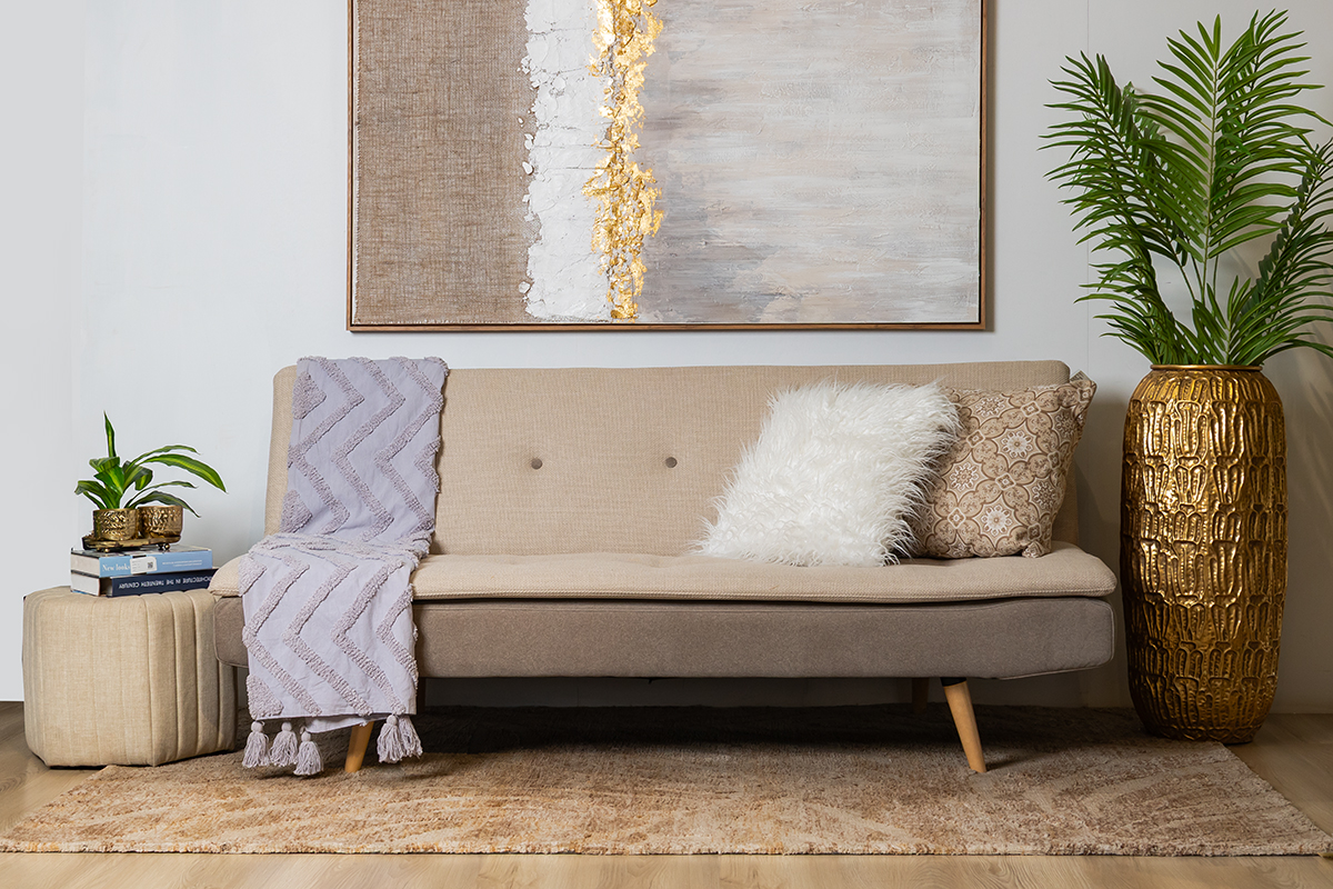 This stylish sofa bed easily converts into a comfortable bed, perfect for small spaces or hosting guests.