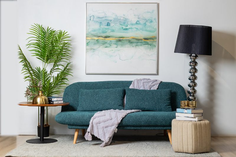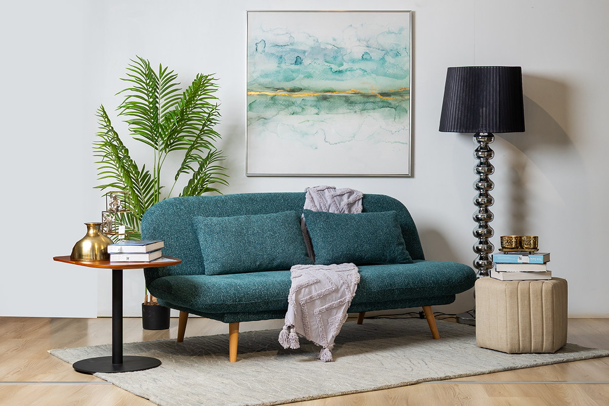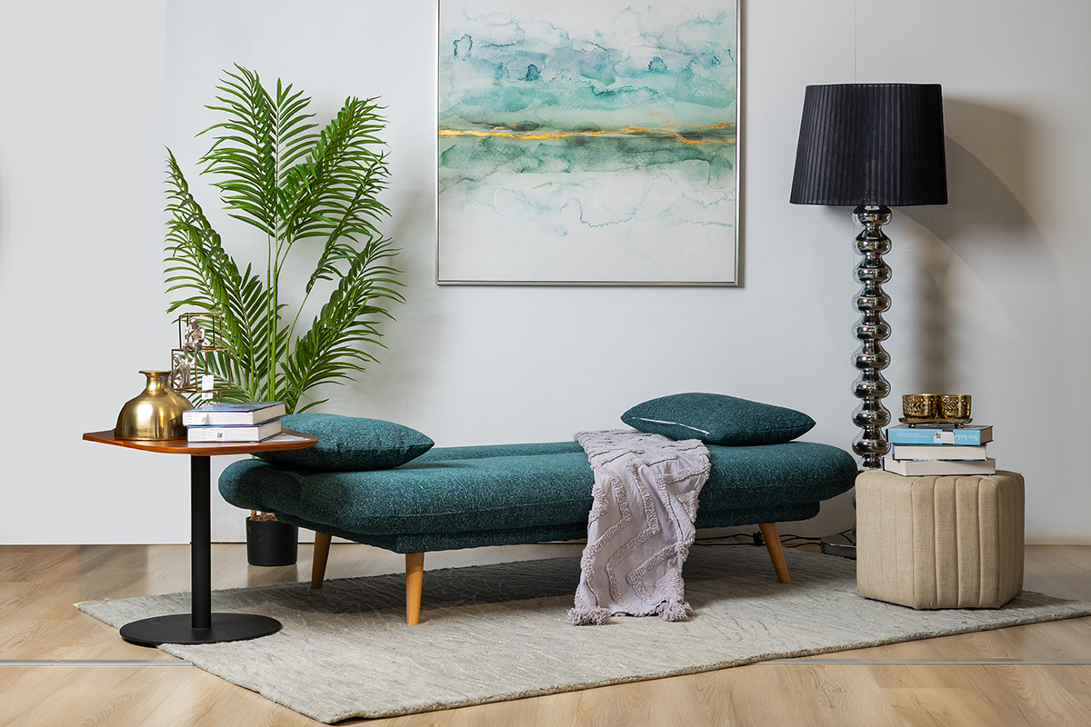 A sleek, space-saving solution that functions as both a comfortable sofa and a cozy bed.