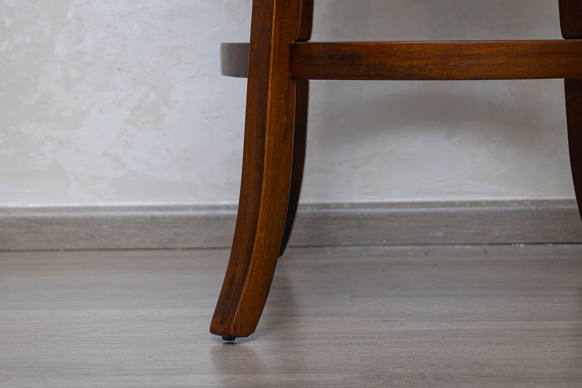 Legs are connected with support bars at the bottom for a footrest and stability.