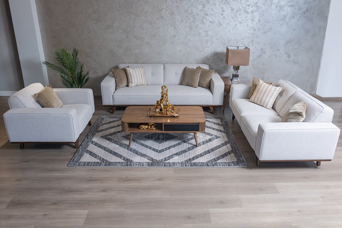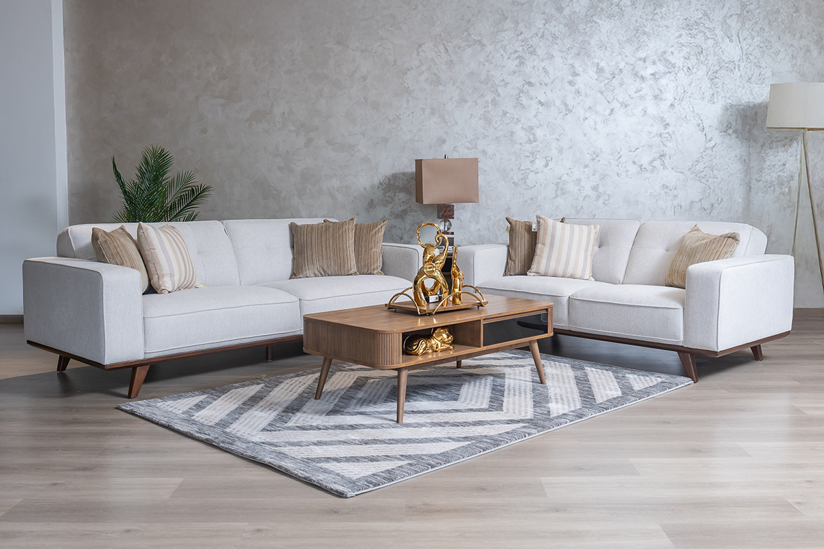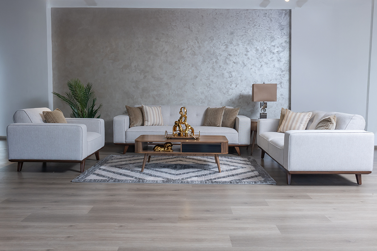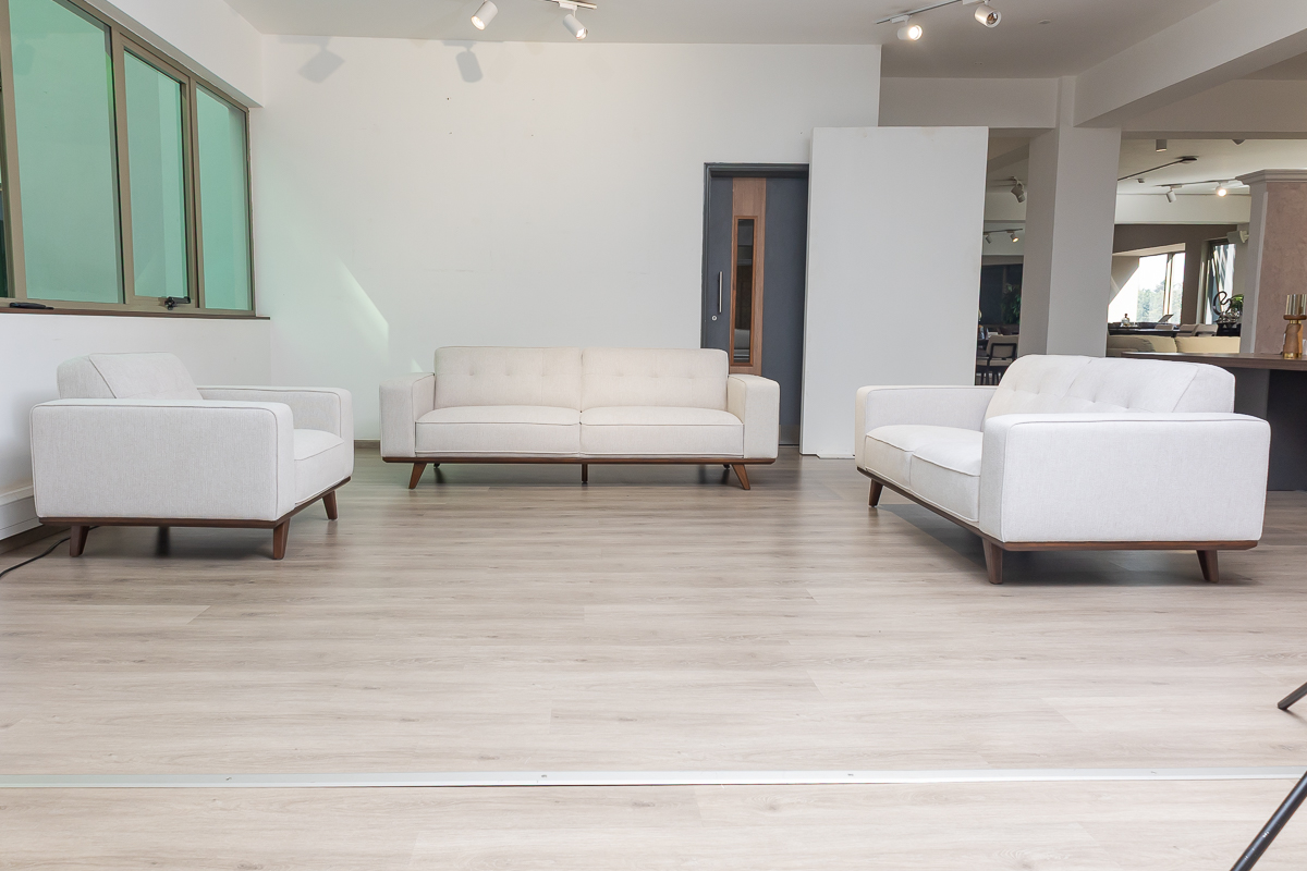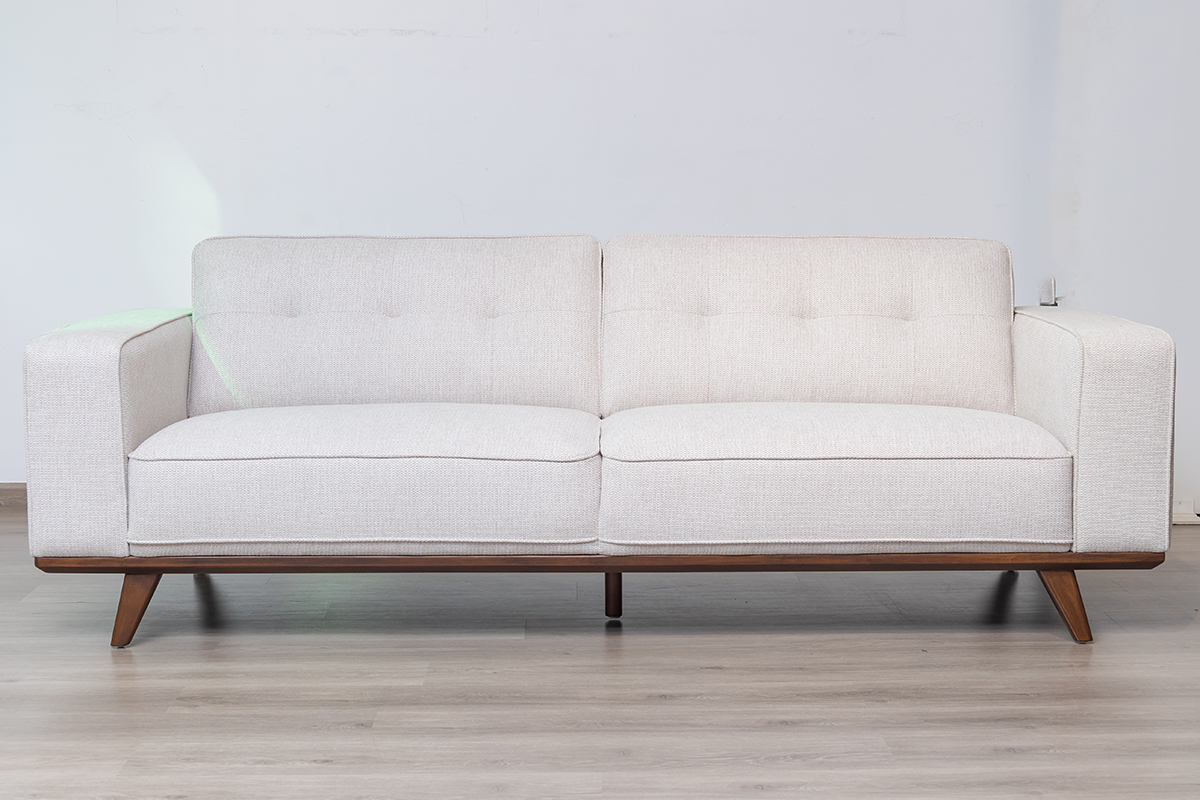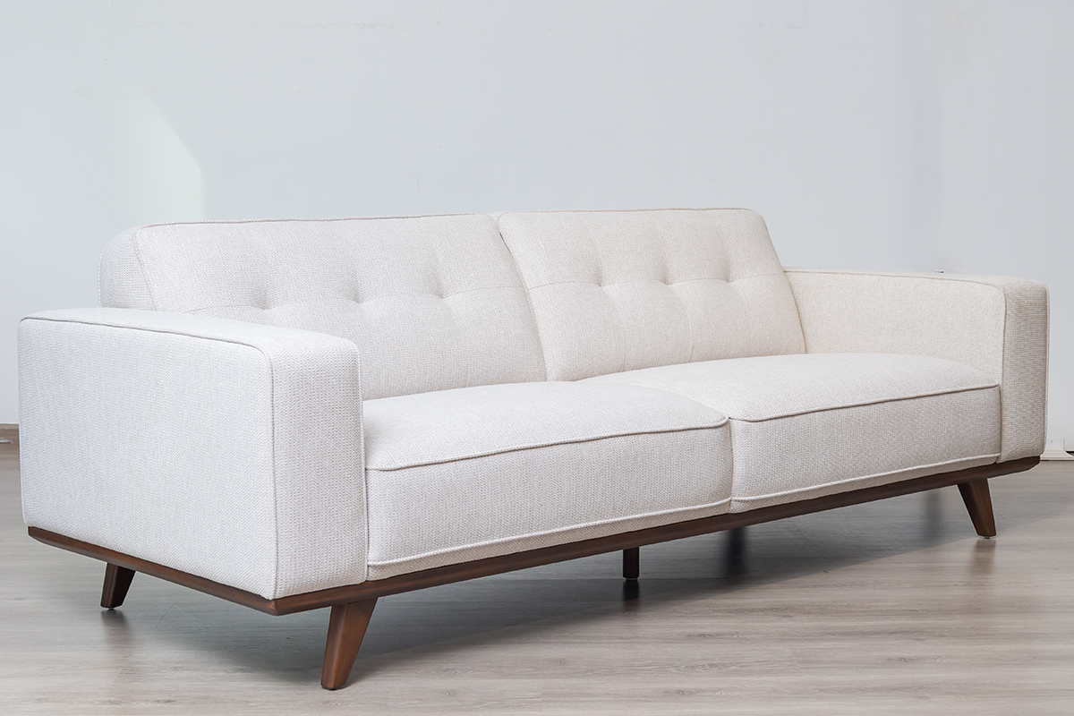 Command attention and redefine comfort with the OLIVER 6-Seater Fabric Sofa. Designed for spacious living and sophisticated style, this expansive sofa combines a bold, structured aesthetic with deep, supportive seating—perfect for large families and those who love to entertain. The elegant contrast of its light chenille fabric and angled wooden legs creates a striking centrepiece for any contemporary home.